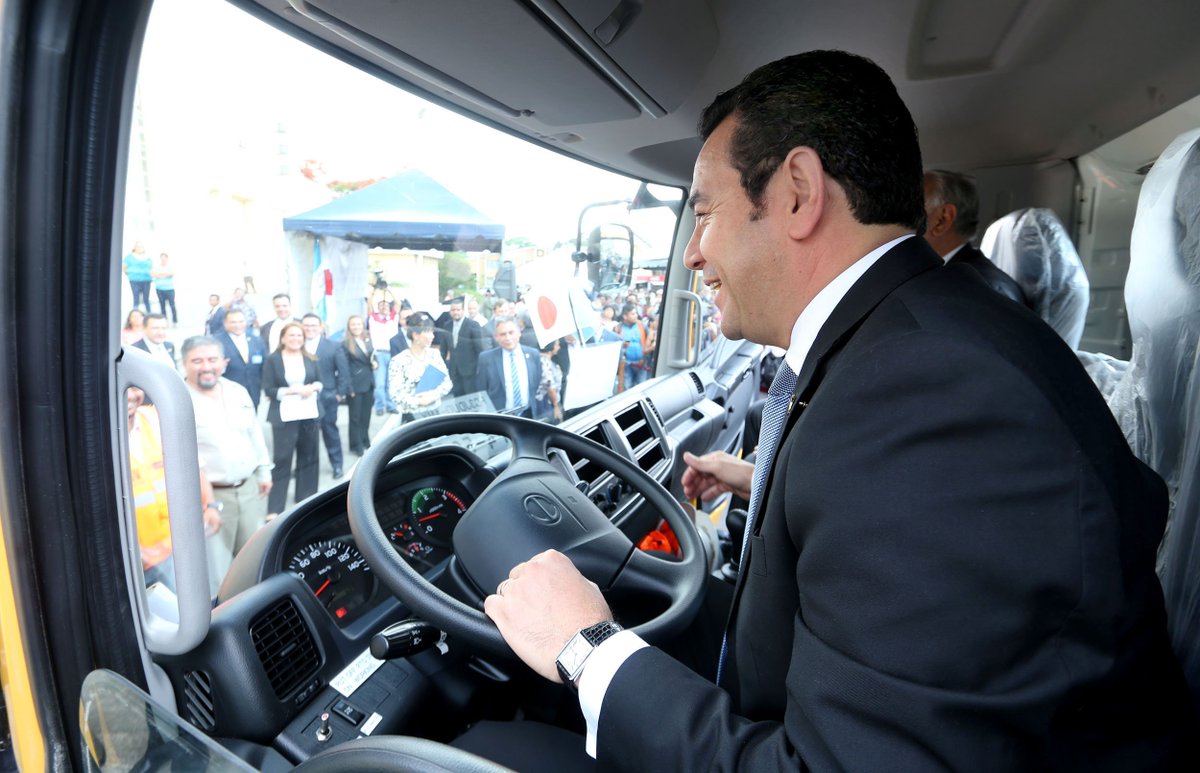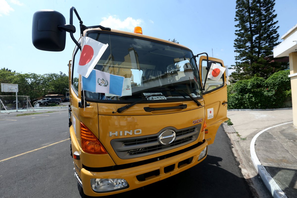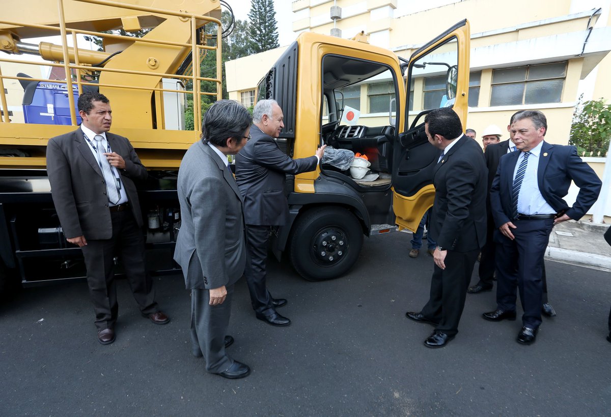 La embajada de Japón entregó hoy un camión-grúa al presidente Jimmy Morales para la inspección de puentes.