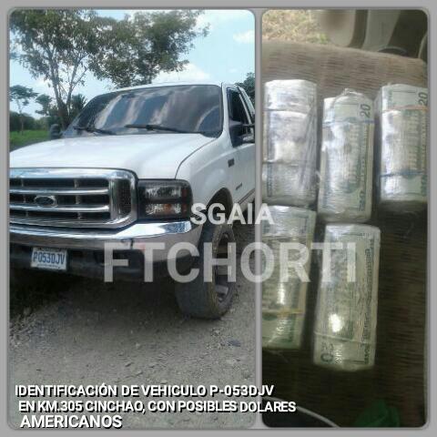 SGAIA-PNC, incautación de $40,000, se captura a Estuardo García García y Elmer Vásquez, en aldea El Cinchao, Izabal.