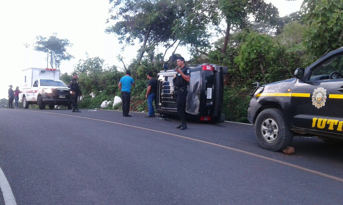 En Calle Los Cocos, Jutiapa vehículo volcado Bomberos Voluntaros atienden a 4 lesionados.